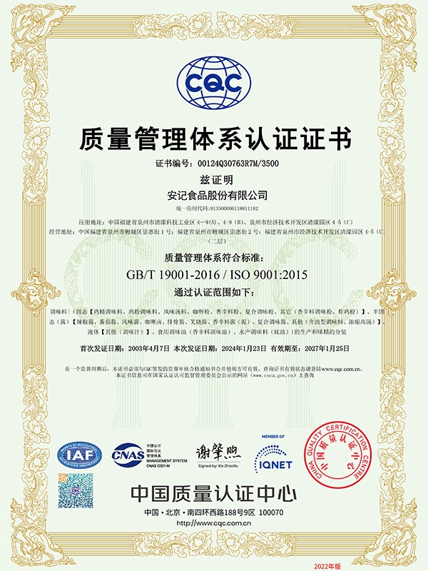 9001管理體系證書