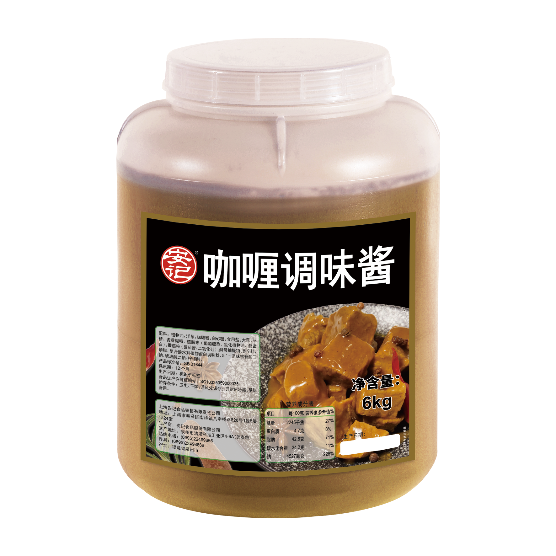 (桶裝)6000g安記咖喱醬2桶裝(烹飪)